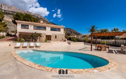 Exquisita villa de lujo con vistas al mar y a la montaña en Altea la Vella Ubicada en una de las zonas más tranquilas y exclusivas de la Costa Blanca, esta sofisticada villa representa la perfecta armonía entre diseño contemporáneo, confort y privacidad. Una propiedad única que ofrece una experiencia residencial incomparable, enmarcada por espectaculares vistas al mar Mediterráneo y a las montañas de la sierra alicantina. Distribuida en cuatro amplios dormitorios, tres baños completos y un aseo de cortesía, esta vivienda ha sido concebida para satisfacer los estándares más exigentes. El diseño interior destaca por una decoración minimalista y elegante, con una cocina office con isla central y zona de lavadero independiente. Las encimeras de microcemento se combinan con mesas de madera y mármol, aportando carácter y estilo al espacio culinario. Los suelos de porcelánico de gran formato, las puertas lacadas en blanco y las ventanas de PVC con rotura de puente térmico contribuyen a crear un ambiente cálido, sofisticado y energéticamente eficiente. El corazón de la vivienda es su amplio salón-comedor, en conexión directa con la cocina equipada con electrodomésticos Bosch de alta gama. Chimenea para un mayor confort en los meses de frio. Desde aquí se accede a una generosa terraza ideal para disfrutar de veladas al aire libre, complementada con una completa zona de barbacoa y una gran mesa exterior. La piscina privada, orientada al sureste, garantiza sol durante todo el día y unas vistas privilegiadas. En cuanto a confort, la climatización ha sido cuidadosamente pensada: calefacción por suelo radiante, aire acondicionado por conductos con bomba de frío/calor, y sistema de aerotermia, lo que se traduce en una eficiencia energética sobresaliente (certificado energético letra C). La propiedad incluye garaje privado, trastero y se entrega completamente amueblada, lista para entrar a vivir. La vivienda cuenta con una parcela adicional de 3,792 m² destinada a bosque. Descubra todo lo que esta villa puede ofrecerle. Agende hoy mismo una videollamada con uno de nuestros consultores patrimoniales y dé el primer paso hacia su nuevo hogar en Altea. Exquisite Luxury Villa with Sea and Mountain Views in Altea la Vella Located in one of the most peaceful and exclusive areas of the Costa Blanca, this sophisticated villa embodies the perfect harmony of contemporary design, comfort, and privacy. A truly unique property offering an exceptional residential experience, framed by breathtaking views of the Mediterranean Sea and the surrounding mountains of the Alicante region. The villa is distributed across four spacious bedrooms, three full bathrooms, and a guest powder room, all thoughtfully designed to meet the highest standards of living. The interior stands out for its elegant, minimalist décor, featuring an open-plan kitchen with a central island and a separate laundry area. Microcement countertops are complemented by wooden and marble tables, adding character and style to the culinary space. Large-format porcelain floors, white lacquered doors, and PVC windows with thermal break ensure a warm, refined, and energy-efficient atmosphere throughout the home. The heart of the villa is its generous living-dining area, seamlessly connected to the fully equipped kitchen with premium Bosch appliances. A fireplace enhances the sense of comfort during the cooler months. From the living area, direct access leads to an expansive terrace—ideal for outdoor dining and entertaining—featuring a fully equipped barbecue area and a large outdoor dining table. The southeast-facing private pool enjoys sunlight all day and offers privileged panoramic views. For climate control, every detail has been considered: underfloor heating, ducted air conditioning with hot/cold pump, and an aerothermal system ensure exceptional energy efficiency (Energy Certificate rating: C). The property also includes a private garage, storage room, and is delivered fully furnished—ready for immediate occupancy. The property includes an additional plot of 3,792 m² designated for forest. Discover everything this exceptional villa has to offer. Schedule a video call today with one of our wealth consultants and take the first step toward your new home in Altea.
