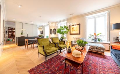 Presentamos en exclusiva esta espectacular vivienda de autor reformada de lujo en el barrio de Chueca-Justicia. La vivienda pertenece a una finca de estilo clásico de principios de siglo XX muy bien conservada. La reforma ha sido realizada por un estudio de arquitectura que ha sabido aprovechar al máximo el espacio. La vivienda posee un hall, un salón-comedor de muy buen tamaño con 3 balcones a la calle, cocina americana muy cómoda con mueble bar y zona de plancha y lavado independiente. En la parte de descanso tenemos dos habitaciones, la suite principal de 35 m2 que incluye gran cantidad de armarios y baño de gran diseño y otra habitación exterior que puede hacer función de segundo dormitorio o de estudio con baño independiente completo. La vivienda tiene suelos de madera, aire acondicionado por conductos en toda la casa, calefacción individual y conserje. Se encuentra actualmente alquilado con contrato de larga duración. Domus Aurea Capital es una agencia inmobiliaria especializada en la intermediación, construcción y gestión de activos inmobiliarios en las zonas prime de Madrid y alrededores. La mayoría de las propiedades que tenemos disponibles no están publicadas en los portales inmobiliarios, para conocerlas todas consulta nuestra web www.domusaureacapital.com