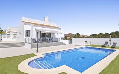 Renovated villa of 160 m² which is composed of 5 bedrooms and 3 bathrooms. Capacity for 8 people. There are 3 bedrooms on the ground floor with two bathrooms, 1 of which is a master suite. Located in El Faro, Mijas Costa, the villa consists, on the ground floor, of an open fitted kitchen (coffee maker, teapot, oven, hob, fridge freezer, microwave, washing machine), a living room opening onto a furnished terrace with a view of the swimming pool and the garden, a bedroom with a 150 cm double bed and a bathroom, a bedroom with a king size double bed as well as a bathroom private with W.C, a bedroom with 150 cm double bed. Independently another space with a bedroom with two single beds and a double bedroom as well as a bathroom with W.C. Surrounded by a large garden with swimming pool, the property can accommodate 2 cars. Pool lounger 9x4.45 and height 0.95 to 1.90 & Barbecue 5 minutes from the beach and local shops