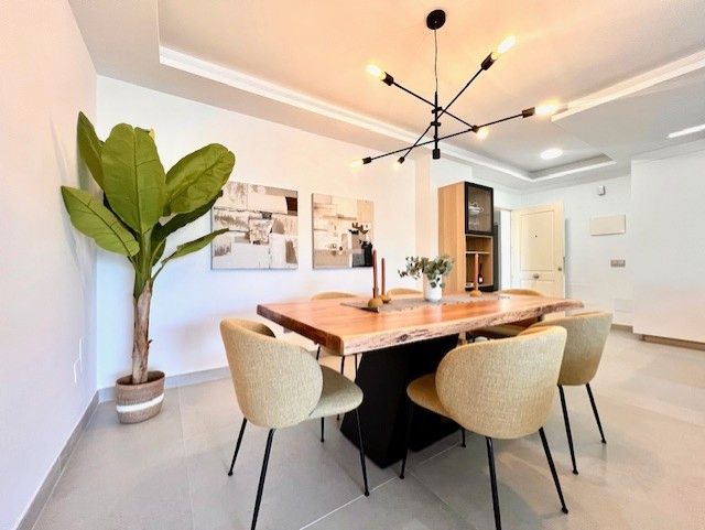 Esta moderna propiedad de una sola planta, situada en la urbanización Jardines de Don Carlos, cuenta con tres dormitorios y dos baños, y es ideal para quienes buscan comodidad y una excelente ubicación. Se encuentra a tan solo unos metros de la playa de Elviria, lo que la convierte en una opción perfecta para disfrutar del mar y el sol. Al entrar, nos recibe una gran terraza acristalada con orientación Este, desde la cual se pueden apreciar las vistas a los jardines y a una de las piscinas comunitarias, un espacio ideal para disfrutar durante todo el año. Esta terraza conecta con un luminoso salón que da paso a una segunda terraza, donde el sol brilla toda la mañana. La vivienda dispone de tres amplios dormitorios con armarios empotrados. Los dos baños, uno de ellos en-suite, han sido recientemente reformados para incluir platos de ducha. La cocina es espaciosa y dispone de electrodomésticos de alta gama y lavadero independiente. La propiedad está equipada con aire acondicionado y calefacción centralizada. Los suelos son de mármol y las ventanas tienen doble acristalamiento Climalit y persianas automáticas. Se incluye un amplio trastero y una plaza de garaje con cargador eléctrico, lo cual es una ventaja añadida para los propietarios de vehículos eléctricos. Esta urbanización ofrece tres piscinas, gimnasio y sauna, lo que hace de este lugar un entorno ideal para disfrutar del tiempo libre. La ubicación es inmejorable, ya que está cerca de todos los servicios, como restaurantes, supermercados, farmacias, y tiene fácil acceso a la autovía. Marbella centro está a 10 min en coche. No dude en contactarnos para más información o para agendar una visita. ¡Esta propiedad es una oportunidad que no querrá dejar escapar! El Documento Informativo Abreviado está a su disposición. Gastos: Impuesto(ITP o IVA+AJD) + gastos de notaría y registro. MPR