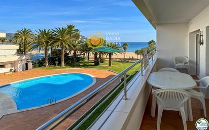 Este apartamento en venta en Santa Margarida, Roses de 66 m² más 15 m² de terraza ofrece una ubicación privilegiada: a solo 20 metros del mar, directamente frente al paseo marítimo, con piscina comunitaria y zonas ajardinadas. Características principales: - Superficie: 66 m² + 15 m² de terraza - 2 dormitorios dobles con armarios empotrados - Luminoso salón-comedor con acceso a la terraza - Cocina independiente reformada y totalmente equipada - 1 baño completo y 1 aseo adicional - Terraza privada de 15 m² con vistas al mar y a la piscina - Piscina comunitaria y zona ajardinada - Edificio con ascensor - Ubicación: frente al paseo marítimo, a solo 20 metros del mar La vivienda destaca por su amplia terraza privada con vistas directas al mar y a la piscina, un entorno perfecto para relajarse y disfrutar del clima mediterráneo durante todo el año. El interior se distribuye de forma funcional: dispone de un salón-comedor luminoso con acceso a la terraza, dos dormitorios dobles con armarios empotrados, una cocina independiente totalmente equipada, un baño completo renovado y un aseo adicional. La comunidad ofrece una piscina con zona ajardinada, lo que convierte este apartamento en una opción ideal para familias o como segunda residencia en la Costa Brava. Su ubicación en Santa Margarida, Roses, lo sitúa en una de las zonas más demandadas, con acceso inmediato a la playa, al paseo marítimo, a restaurantes, comercios y todos los servicios. Ubicación: Zona: Santa Margarida, Roses Costa Brava, Alt Empordà, Girona A solo 20 metros de la playa y frente al paseo marítimo Excelente conexión con Figueres, Girona y Francia