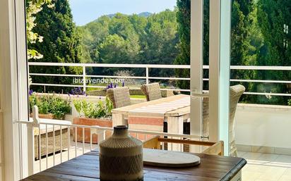 Preciosa propiedad en el prestigioso complejo de golf Roca Llisa, conocido por su tranquilidad y exclusividad La propiedad se encuentra en un estado impecable y cuenta con 107 m² de espacio interior y una amplia terraza de 33 m². La terraza ofrece impresionantes vistas de la naturaleza circundante y del campo de golf. El dormitorio principal, el amplio salón, la cocina y el comedor tienen acceso directo a la terraza. Además, la casa tiene un segundo dormitorio doble, un dormitorio individual, dos baños y un lavadero con espacio para lavadora y secadora. Roca Llisa está muy solicitada por aquellos que buscan tranquilidad, seguridad y una ubicación privilegiada. Es ideal para los amantes del golf y familias por igual y es adecuado tanto como primera y segunda residencia. La comunidad está convenientemente situada entre Ibiza y Santa Eulalia, a sólo 15 minutos de ambas, y a sólo 5 minutos de Cala Olivera y Cala Llonga y a 10 minutos de Jesús. Para aquellos que buscan más comodidad, existe la opción de adquirir una plaza de garaje independiente con trastero. Este garaje ofrece acceso a una piscina comunitaria, que completa las muchas comodidades que ofrece esta propiedad. Póngase en contacto con nosotros por correo electrónico, podemos organizar una visita a su conveniencia. Póngase en contacto con nosotros por correo electrónico, podemos concertar una cita de visita cuando más le convenga. Tenemos muchas más casas, pisos, chalets, fincas, locales comerciales y parcelas en alquiler y venta en la isla. Gracias por considerarnos su agencia inmobiliaria en Ibiza.