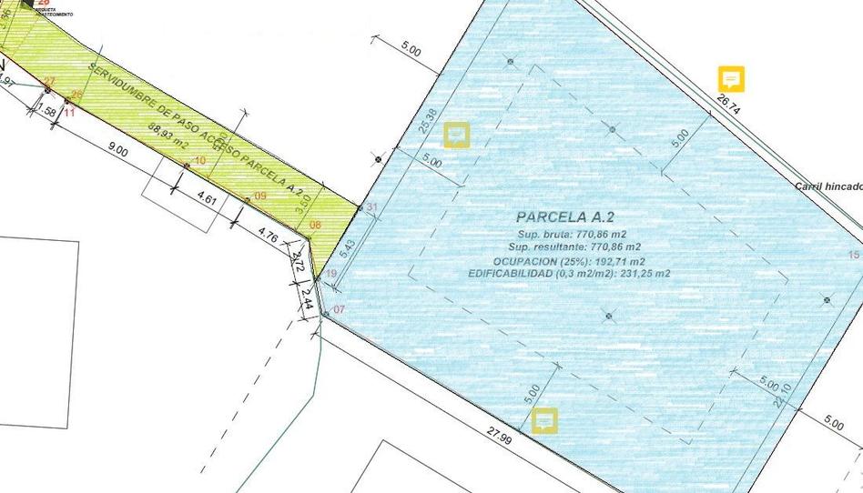 La calificación del terreno es urbana, tiene una superficie de 770m2 y una edificabilidad del 30%, lo que permite una construcción de hasta 231m2.