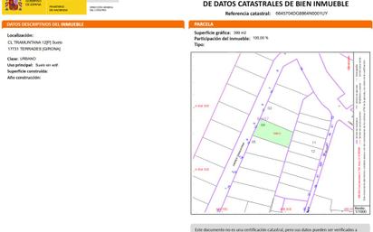 Suelo urbano de uso residencial en Calle Tramuntana, en el municipio de Terrades, provincia de Girona. Dispone de una superficie de 438 m2. La topografía natural del terreno es llana, con fachada a una calle. Se trata un terreno urbano consolidado La caracterización urbana, es que se trata de una zona con desarrollo finalizado, con una consolidación de nivel medio alto. Existe pavimentación, alcantarillado, suministro de agua, suministro de luz, existe suministro de gas por red general, dispone de postes de servicio telefónico, alumbrado público, la conservación de la calidad de las infraestructuras colindantes es de nivel medio.