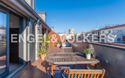 Engel & Völkers tiene el placer de presentarles este magnífico ático exterior con gran terraza y ubicación fantástica en Chamberí, al lado de Princesa y Alberto Aguilera, en un edificio premiado por su magnífica rehabilitación en los premios ASPRIMA - SIMA 2011. La propiedad, actualmente alquilada, está en perfecto estado y ofrece un aprovechamiento máximo y racional de su superficie. Consta de salón-comedor, dormitorio con amplios armarios empotrados, baño en suite, luminosa cocina independiente totalmente equipada y amplísima terraza, sin duda, el valor más preciado de la casa. Tanto el dormitorio como el salón-comedor tienen agradables vistas y acceso directo a la encantadora terraza de 23 metros cuadrados con suelo de madera y dos pequeños trasteros, uno a cada lado, que le proporcionan un espacio extra de almacenaje. Todas las estancias de la casa disfrutan de ventilación y luz natural. La vivienda goza de muy buenos acabados como por ejemplo los suelos de mármol serpeggiante y la carpintería exterior con cristales Climalit y contraventanas de aluminio. Además, cuenta con un sistema de aire acondicionado por conductos (frío/calor) y una instalación de energía solar para calentar el agua. El edificio dispone de conserje, dos ascensores, gimnasio en la planta baja y garaje en finca. De manera opcional, por 45.000€, se ofrece una plaza de garaje robotizada con acceso vía chip. En definitiva, un producto único, exclusivo y muy difícil de encontrar. Una excelente oportunidad para invertir en un ático en Chamberí. Esta vivienda está ubicada en el barrio de Gaztambide, perteneciente al distrito de Chamberí y una de las zonas de Madrid que guarda el encanto de antaño. Aquí conviven una amplia diversidad de pequeños negocios familiares de toda la vida (carnicerías, ultramarinos, fruterías, sastres, tiendas de ropa, decoración…), junto con bares, restaurantes, supermercados, grandes almacenes como Zara y El Corte Inglés y otras reconocidas tiendas de marcas nacionales e internacionales. Perfectamente conectado, la red de transportes de Gaztambide incluye estaciones de metro (Moncloa, Argüelles e Islas Filipinas), paradas de autobús y uno de los principales intercambiadores de autobuses de Madrid, sin olvidar el rápido acceso a las rutas A-6, M-30 y M-500. En este mismo entorno se desarrolla una rica vida cultural. Sirvan como ejemplo los teatros Galileo, de La Abadía y del Canal. En unos pocos minutos se llega caminando a uno de los pulmones de Madrid, el emblemático parque del Oeste, zona ideal para pasear, hacer ejercicio y gozar de la vertiente verde de la capital. En cuanto a infraestructura sanitaria, a muy poca distancia ofrecen sus servicios de reputación internacional la Fundación Jiménez Díaz y el Hospital Clínico. En resumen, una zona privilegiada en una ciudad tan irrepetible como Madrid.