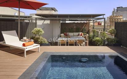 Este impresionante ático dúplex de lujo en la Dreta de l’Eixample, una de las zonas más exclusivas de Barcelona. La propiedad tiene 221 m² construidos y combina la belleza clásica de la arquitectura barcelonesa con un diseño moderno y elegante. Lo que más nos encanta es su terraza privada de 100 m², que se puede acceder directamente desde el interior. En ella, se encuentra una cocina de verano, un espacio chill-out y una piscina, perfecta para relajarse o recibir amigos en un entorno muy especial. La distribución es muy cuidada: cuenta con tres dormitorios dobles en suite, todos exteriores y con armarios empotrados. La suite principal tiene un vestidor, bañera exenta, ducha y balcón, lo que aporta mucha luz y amplitud. La zona de día es muy luminosa, con un amplio salón-comedor y una cocina abierta, además de seis balcones que dejan entrar mucha luz natural y aire fresco. También tiene un espacio abierto para estudiar o trabajar, con acceso a la terraza superior por una escalera de diseño, que ofrece vistas panorámicas increíbles. Los acabados son de lujo: suelos de madera en espiga, marcos de cerámica artesanal, armarios integrados con paneles decorativos y un sistema de iluminación inteligente que realza cada rincón. La ubicación es simplemente perfecta: en la prestigiosa Dreta de l’Eixample, a pocos pasos del Passeig de Gràcia, rodeado de boutiques de lujo, restaurantes de alta gastronomía y servicios exclusivos. Es un lugar que combina la historia y el carácter de Barcelona con un estilo de vida sofisticado y vibrante. Este ático dúplex representa una oportunidad única para vivir en una de las zonas más emblemáticas de la ciudad, disfrutando de un espacio que une historia, diseño y lujo en un entorno privilegiado.