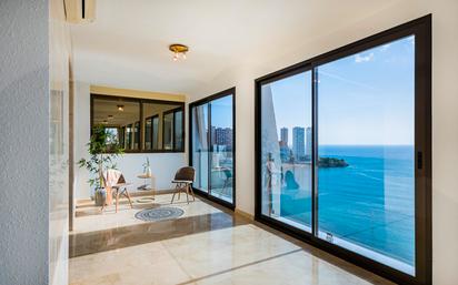 Exclusivo Ático Frente al Mar en Playa Levante Benidorm, con una superficie de 235 m2 distribuidos en amplio salón y comedor, cocina completa y equipada con electrodomésticos, 4 dormitorios uno de ellos como dormitorio principal con baño en suite y salida a la terraza, 3 baños completos en total, terraza acristalada integrada en el salón con espléndidas vistas panorámicas al mar Mediterráneo. Sus amplias estancias con acabados de alta calidad, permiten la comodidad de un verdadero hogar, equipado con aire acondicionado centralizado, portero automático con cámara y sistema de calefacción. El edificio cuenta con ascensor, portería, cámaras de seguridad en espacios comunes garantizando la máxima seguridad, parking cubierto exterior, piscina con zona de barbacoa y jardín. La finca se encuentra completamente vallada. La vivienda se ubica en zona céntrica de Benidorm, con todos los servicios básicos alrededor como: tiendas, restaurantes, cafeterías, bancos, peluquerías…etc, Además con excelente conexión de transporte público que comunica a cualquier punto. Una vivienda única para disfrutar de calidad de vida disfrutando del lujo, sol y playa!
