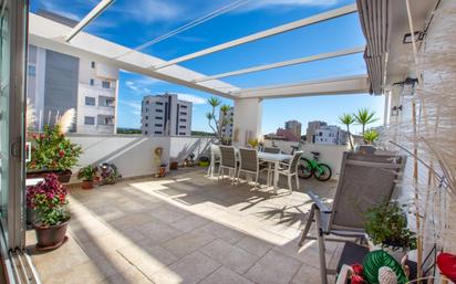Ático con terraza y vistas al mar. Este fantástico ático de aprox. 186m2 situado en una 7ª planta a escasos metros de la playa con una espectacular terraza con vistas a las dunas de Guardamar del Segura y todo el mar mediterráneo, así como al Rio Segura. Tiene una localización que es inmejorable, ya que te permite moverte andando hacia la zona más céntrica, como es la Calle Mayor de Guardamar, donde encontrarás cualquier establecimiento que estés buscando. Este fantástico ático se encuentra en muy buen estado, todo el espacio es muy luminoso, acogedor y está distribuido en 2 dormitorios, 2 baños, un enorme despacho que podría ser una tercera habitación, así como otra habitación transformada en un vestidor, una gran cocina con isla para cocinar y completamente equipada con electrodomésticos, con mucho espacio para guardar cosas, un salón muy cómodo y luminoso con salida a la terraza desde la misma planta. ¡TIENES QUE VER SU TERRAZA! que desayunos, comidas, cenas, reuniones con amigos etc. respirando aire puro todo un lujo y con vistas al mar y de noche con iluminación LED de color. Los baños también están aprovechados al máximo, con sus muebles a medida para tener espacios donde colocar todo lo que no tiene que estar a la vista. Disponen de plato de ducha con mampara. Es una vivienda en perfectas condiciones y cuidada al detalle, ya que los propietarios quieren que el que entre en este piso disfrute de su tiempo en él y esté a gusto, así como ellos lo han estado. ¿Quieres más? Este piso viene acompañado de 2 amplios garajes, GYM comunitario, club social con 600mBit/s de internet gratis, tenis, pádel, baloncesto, ping pong, futbolín…. y mucho mas… por si todo lo de antes te parecía poco. En los alrededores podemos encontrar diferentes zonas de restauración, parques, paseos, escuelas, pabellón de deportes, supermercados y Centro de Salud. IMPORTANTE: Este ático está construido SIN BARRERAS ARQUITECTÓNICAS, Adaptado para silla de ruedas con puertas muy anchas en toda la casa. Es interesante saber además qué también dispone de dos ascensores. Las preciosas vistas panorámicas al mar desde tu terraza privada y la excelente ubicación a tan solo unos 300 metros de la playa son otras de sus grandes ventajas. Y eso no es todo. Está situado en frente de las dunas de la pinada de Guardamar del Segura, a solo un paseo de la playa.