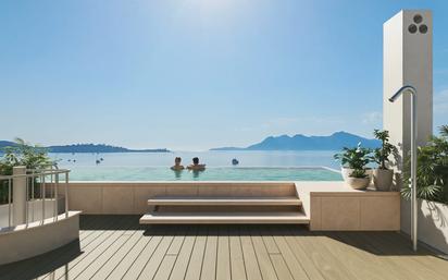 Descubra este espectacular ático ubicado en una de las zonas más codiciadas de Mallorca, en primera línea del Puerto de Pollensa, donde el mar y la montaña se funden en un entorno único. Con una superficie total de 188 m², esta propiedad ha sido diseñada y renovada íntegramente con materiales de primera calidad y un estilo contemporáneo que combina elegancia y confort. La vivienda se distribuye en dos niveles y cuenta con cuatro amplios dormitorios dobles, dispone de dos baños completos, uno de ellos en suite con bañera y otro con ducha, ambos con acabados modernos y de alta gama. La cocina abierta con isla central se integra armoniosamente con el salón-comedor, creando un espacio diáfano con grandes ventanales y vistas panorámicas al mar, todas las estancias son exteriores y dotados de ventanas de doble acristalamiento con puente térmico y aislamiento acústico, garantizando la máxima luminosidad y tranquilidad, el ambiente se completa con un sistema de aire acondicionado frío/calor por conducto, que asegura el máximo confort durante todo el año. En el nivel principal se encuentra una terraza techada a nivel, ideal para disfrutar de comidas al aire libre frente al mar. Desde allí se accede a la espectacular terraza superior de uso privativo, que cuenta con piscina privada, zona chill-out y una cocina de obra, ofreciendo un espacio incomparable para el relax y el entretenimiento, con vistas de ensueño al mar y a la montaña. El complejo residencial ofrece excelentes zonas comunitarias que incluyen piscina, jardín, gimnasio, zona de juegos, baño y ascensor. Además, la propiedad dispone de trastero y la posibilidad de adquirir plazas de garaje con valor independiente. Con fecha de entrega prevista para finales de 2025, este ático representa una oportunidad única de adquirir una residencia exclusiva, moderna y lista para estrenar, en un entorno natural incomparable y a pocos pasos del mar.