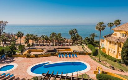 ÁTICO DÚPLEX URB. RÍO REAL, MARBELLA Este impresionante ático dúplex es único en su tipo. Tiene vistas panorámicas al mar en dos niveles y está justo al lado de una de las playas de arena más fina de Marbella. Esta propiedad única de 4 dormitorios y 5 baños ha sido completamente renovada y cuidadosamente decorada por un conocido diseñador de interiores. El concepto de planta abierta cuenta con una cocina totalmente equipada y un luminoso comedor abierto. El ático está equipado con muchos extras de lujo, como una chimenea eléctrica, un sistema de sonido Bang & Olufsen o armarios hechos a medida. El ascensor conecta el ático con un aparcamiento subterráneo y un trastero. La comunidad Rio Real Playa tiene 2 piscinas comunitarias rodeadas de exuberantes jardines. El complejo tiene acceso directo al paseo marítimo y la famosa playa de Trocadero está a pocos pasos. PRECIO: 4.995.000E OFERTA SUJETA A POSIBLES ERRORES, OMISIONES, CAMBIO DE PRECIO O CUALQUIER OTRA MODIFICACION SIN PREVIO AVISO.