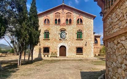 Can Miret de las Torres, masía modernista en venta de 1.898 con 16 Ha de terreno y 1.500 m2 habitables, en Sant Pere de Ribes a 1km de Sitges y a 20 minutos del aeropuerto de Barcelona. Can Miret de las Torres está situada junto al núcleo de las Torres y tocando Vallpineda. Es un edificio aislado de estilo modernista formado por planta baja y dos pisos, con tejado a dos aguas. La fachada, de composición simétrica, da acceso a la planta principal por una puerta de arco de medio punto y dos ventanas enmarcadas en ladrillo. Toda la ornamentación de la fachada, se inscribe dentro de la vertiente gótica del modernismo, claramente visible en las ventanas del primer piso primer piso. La forma de las ventanas del segundo piso, se condicionó a la utilización decorativa del ladrillo. En su fachada principal destacan un reloj de sol, ilustrado con las curvas de declinación solar y los signos del zodíaco, así como platos y baldosas de cerámica valenciana de distintas épocas, elementos ornamentales que enriquecen la fachada. Un detalle importante a destacar es el balcón circular de piedra de la esquina, profusamente esculpido. Corona el tejado una veleta de hierro forjado. El arquitecto Font y Gumà construyó esta casa para su hermano en 1898. Cuando este murió, Font i Gumà pasó a ser el propietario. Posteriormente, el edificio fue vendido a la familia Miret, de la que conserva el nombre. La propiedad dispone de varias edificaciones. El edificio principal tiene una superficie de 784 m2 que actualmente se distribuyen en 15 habitaciones, 2 baños, 2 aseos, cocina y varias salas. Además dispone de 1.028 m2 de edificaciones anexas. El estado estructural del edificio, sus suelos de barro cocido y baldosa hidráulica, los altos techos y las vigas, son muy buenos. La cocina, baños, cerramientos, etc. se han de renovar. Tiene un jardín de unos 5.000 m2 dónde destaca un pozo hecho de ladrillo, el huerto, una capilla de 100 m2, la bodega de 320 m2 en perfecto estado, los corrales y las caballerizas. La finca incluye 2,5 has de bosque, una viña de 10 has con tres variedades de uva: Xarelo, Sumoll y Merlot, con denominación de origen y con derechos de viña nueva y vieja (más de 100 años) todo emparrado y parte ecológica. La producción de uva se vende a distintas bodegas.
