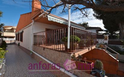 Casa pareada en una sola planta, reformada y con piscina. Es una casa muy práctica y completa, bien comunicada y además lista para entrar a vivir. La casa en su interior se desarrolla en una sola planta en la cual tenemos el salón comedor amplio, cocina semi americana ya que como se aprecia en las fotos., una parte de ella es abierta y la otra cerrada., por lo que si te gusta solo con cocina cerrada., también tiene arreglo y de forma muy económica. Acto seguido encontramos el pasillo distribuido que nos conduce a dos habitaciones dobles y una individual. A un cuarto de baño completo y reformado con plato de ducha y a un cuarto de aseo nuevo de hace 3 años. La casa cuenta con calefacción con sistema de gasoil, un aparato de aire acondicionado, armario empotrado en la habitación principal, ventanas de aluminio climalit, verjas de seguridad, toldos en todas las ventanas donde puede ser necesario. Además, el Sol y la claridad al ser una casa con ventanas en 3 de sus 4 costados., hace acto de presencia y alegra el día, le da calidez natural a la casa. Cuenta con dos reformas importantes., una a principios del año 2000 y otra hace 3 años. De esta forma., la cocina, los suelos, puertas, marcos, ventanas, cuarto de baño, aseo se encuentra actualizados. Toda la parte baja de la casa es un garaje amplio con un cuarto de aseo y dos cuartos que en la actualidad se utiliza uno como habitación y el otro como sitio de almacenamiento. El garaje es muy amplio, es de techo bajo (1.80 aproximadamente) y cuenta con baldosas en el suelo y hasta media pared. Por último., la zona exterior de la casa cuenta en la parte frontal con la rampa de acceso al garaje, porche con toldo para estar plácidamente incluso en el invierno ya que a partir de las 12 hay Sol durante todo el día. El pasillo lateral que nos conduce a la zona donde se encuentra la piscina que es pequeña, pero refresca igual que una grande y te hace pasar unos ratos maravillosos en familia. Al lado un espacio pequeño de patio y el sitio donde se encuentra la caldera y la depuradora de la piscina. La casa esta ubicada justo en la división entre Creixell y Torredembarra, por lo que viviendo en esta casa., cuentas con todos los servicios de las dos poblaciones. A un kilómetro a la redonda aproximadamente tienes supermercados, playa, servicios de transporte, escuelas, etc… Si buscas una casa práctica, lista para entrar a vivir, con piscina y en una sola planta, con un garaje amplio., esta puede ser una buena opción.