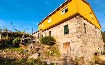 Casa de pueblo pareada situada en la parroquia de Peitieiros (Gondomar), en zona alta y soleada con amplias vistas a la montaña. Ubicada sobre un terreno de 1.176 m2, con desnivel, el cual tiene dos fachadas a carretera, una en su parte norte y otra en su parte sur. A la vivienda se accede a través de un bonito y agradable patio cubierto con parra de viña. Distribución: Planta baja: Cocina, sala de estar, 2 dormitorios y 1 baño con dos accesos: uno desde el pasillo y otro desde el dormitorio principal. Zona de lavandería con escalera de acceso a la planta primera. Planta primera: Salón, 1 dormitorio grande, 1 dormitorio pequeño, 1 trastero. Sótano: Zona de bodega y trastero. Desde el camino y pegado a la casa, hay un garaje y un trastero, cada uno con su puerta independiente. Superficies: Vivienda (87+62 m2), Garaje-trastero (62m2), semisótano (39m2) La casa tiene agua de pozo. Si desea más información, puede ponerse en contacto con nosotros y le atenderemos sin compromiso alguno.
