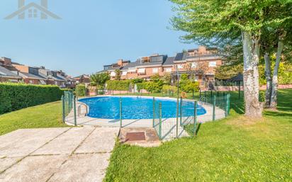 HOGARES MAJADAHONDA GOLF vende en exclusiva espectacular CHALET ADOSADO CON PISCINA y con las mejores calidades en la zona del monte del Pilar. En la planta principal encontramos; Un recibidor con armario gabanero, aseo de cortesía y una gran cocina donde encontramos, amplio espacio de office, con las mejores calidades en materiales, electrométricos, etc. Seguidamente encontramos un gran salón que da paso a dos ambientes muy bien distinguidos, zona de comedor y la zona de estar muy acogedora, desde el mismo tenemos acceso al porche y al jardín. En el jardín encontramos zona de estar con acceso a una zona con césped. La primera planta se compone de; Dormitorio principal muy amplio y luminoso con vestidor incorporado, un cuarto de baño en suite con plato de ducha. Dos dormitorios secundarios amplios y con armarios empotrados vestidos. Un cuarto de baño independiente para dar servicio a estos. Planta segunda: Buhardilla totalmente equipada con dos dormitorios, una amplia sala de estar. En la planta sótano; Encontramos amplio garaje con puerta automática, un dormitorio con cuarto de baño completo, espacio de almacenaje y zona de lavado. La vivienda esta equipada con persianas eléctricas, aire acondicionado por split, paredes en liso y toda la carpintería en blanco, además de una gran chimenea. NO DUDE EN PREGUNTARNOS Y VISITARLA VIVIENDA. HIPOTECA 100% NO DUDES EN VENIR A VISITARLO.