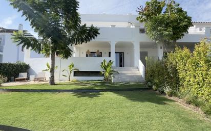 Lujosa casa adosada en la zona de El Campanario. Esta propiedad única ha sido completamente renovada y ofrece un diseño interior elegante y personalizado. Distribuida en tres plantas, su distribución es práctica y elegante. La planta baja cuenta con un recibidor con armarios empotrados y un práctico lavadero. También hay un baño y un dormitorio o despacho con acceso inteligente a través de una puerta de panel oculto. La cocina es abierta, equipada con electrodomésticos Bosch y hecha a medida con una magnífica carpintería de madera, vitrina, encimeras de imitación piedra natural y una barra americana. El salón es amplio y luminoso, con un comedor y una sala de estar con chimenea. Desde aquí se accede a la terraza envolvente, que ofrece un espacio exterior cubierto y abierto, perfecto para comer al aire libre, bañarse o relajarse. El espacio exterior se extiende a un jardín privado de unos 150 m² con ducha exterior y conexión para un jacuzzi. En la planta superior hay tres dormitorios con baños en suite. En la planta baja encontramos una plaza de aparcamiento doble y un amplio trastero privado. Climatización Airzone Suelo radiante en baños Sistema de calentamiento de agua solar La comunidad cuenta con dos piscinas y una pista de pádel.