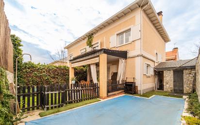CAPITAL HOME VENDE CHALET PAREADO EN BOADILLA DEL MONTE La vivienda se encuentra en casco urbano muy cerca de todos los servicios, la zona ideal para una familia numerosa por sus espacios y su comodidad. La vivienda se distribuye en: - Planta baja o de entrada con cocina totalmente equipada y amueblada, aseo de cortesía, habitación en planta y salón independiente totalmente equipado con aire acondicionado con bomba de frio y de calor, con salida directa a un espacioso jardín con piscina y acceso directo al garaje privado con espacio para un coche y moto creando una zona totalmente independiente. - Primera planta donde se encuentran dos amplios y luminosos dormitorios individuales con un baño completo con plato de ducha, y un dormitorio principal con vestidor y baño en suite. - Buhardilla totalmente diáfana y muy luminosa equipada con aseo y aire acondicionado con bomba frio y calor. DEPARTAMENTO DE FINANCIACIÓN Y ASESORAMIENTO PERSONALIZADO GRATUITO. No dude en consultarnos cualquier duda y estaremos encantados de mostrarle que esta casa podría ser suya. ¡Le esperamos!