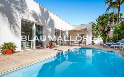 Esta casa unifamiliar, de estilo moderno, se encuentra en una zona inmejorable de Port Verd, en segunda línea de mar. Dispone de piscina, patio, barbacoa, terraza en azotea, además de parking para dos coches. En un total de 120 m2 habitables encontramos: dos dormitorios dobles, con armarios empotrados y baños en suite, además un gran dormitorio principal, con baño en suite provisto de ducha y bañera, desde donde se puede disfrutar de las vistas a la piscina. Desde alli podemos acceder a una espaciosa cocina abierta con un amplio comedor totalmente acristalado, lo que le proporciona una luz inmejorable. A través de la escalera llegamos a la terraza en azotea desde donde se puede disfrutar del sol y de bonitas vistas. El patio con la fuente al fondo es el lugar ideal para pasar una agradable velada de barbacoa con los amigos. Si lo que está buscando es una casa de diseño, en un lugar tranquilo, no dude en contactarnos. Blau Mallorca www.blaumallorca.com Tel. (+34) 659075326
