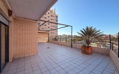 Se alquila magnífico piso en edificio moderno con ascensor, situado en una zona céntrica y muy bien comunicada de Alicante, rodeado de servicios y con excelentes accesos. La vivienda dispone de 104,53 m² útiles, distribuidos en pasillo, amplio salón-comedor con salida a la terraza delantera cubierta, cocina independiente totalmente equipada con acceso a la terraza trasera descubierta, galería, tres dormitorios y dos baños completos, uno de ellos en suite. Uno de los grandes atractivos de esta vivienda son sus dos terrazas de gran tamaño, que aportan mucha luz natural, ventilación cruzada y sensación de amplitud. La suite principal se abre a la terraza trasera descubierta, con vistas al Castillo de Santa Bárbara y a la piscina comunitaria, mientras que los otros dos dormitorios se abren a la terraza delantera cubierta, con vistas despejadas a la avenida. La vivienda se alquila completamente amueblada, con cocina equipada con electrodomésticos (lavavajillas, microondas y lavadora incluidos). El salón dispone de televisión, al igual que dos dormitorios. Cuenta con sistema de aire acondicionado por conductos frío/calor con termostato general, garantizando confort durante todo el año. El edificio ofrece piscina comunitaria y zona de juegos infantiles. En la terraza trasera hay instalada una pérgola, ideal para disfrutar del exterior con comodidad. Una vivienda ideal para quienes buscan espacio, tranquilidad y calidad de vida, en una excelente ubicación. Precio: 1.400 €/mes Alquiler de larga duración. Se busca inquilino/a responsable y tranquilo/a. No se admiten mascotas.