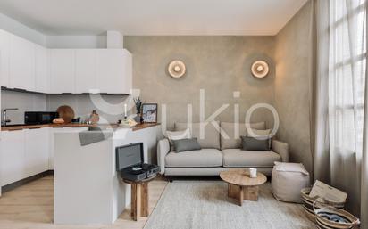 *APARTAMENTO CON TERRAZA* *COMPLETAMENTE AMUEBLADO* *ALQUILERES MENSUALES DE 1 A 11 MESES* Bienvenido a Tramonti, un elegante y espacioso apartamento situado en el vibrante barrio de Sant Antoni. Con calles arboladas y un montón de restaurantes y bares de moda, Sant Antoni es el mejor telón de fondo para cualquier aventura en Barcelona. Después de un día en la ciudad, vuelve a Tramonti para experimentar su diseño inspirado en la playa y sus comodidades, que lo convierten en el lugar perfecto para volver a casa. Este apartamento de 62 m2 interiores cuenta con un acogedor dormitorio doble con cama de matrimonio y acceso a un encantador balcón. Despertar a la luz del sol mediterráneo y disfrutar de una taza de café mientras disfruta de las vistas y sonidos del barrio. Además, hay una cama individual disponible, proporcionando arreglos flexibles para dormir para su conveniencia. También hay un cuarto de baño bien equipado, con modernos accesorios y comodidades. Tanto si prefiere una ducha rápida y refrescante como un baño tranquilo en la bañera, este cuarto de baño está diseñado para satisfacer sus necesidades. En el pasillo, encontrará una estación de trabajo dedicada, ideal para ponerse al día con el trabajo o simplemente navegar por Internet durante su estancia. Este espacio de trabajo designado ofrece un entorno tranquilo y cómodo para cualquier tarea que requiera su atención. El corazón del apartamento es la zona de salón y cocina de planta abierta, donde podrá relajarse y descansar. Las paredes con textura y las sillas con respaldo de mimbre añaden elementos tranquilizadores junto a la playa y aligeran el espacio. La mesa de comedor es un lugar encantador para saborear deliciosas comidas preparadas en la cocina totalmente amueblada, que está equipada con todos los electrodomésticos y utensilios necesarios. Para disfrutar al aire libre, Tramonti ofrece acceso a una terraza compartida en la azotea, con una mesa de comedor exterior y una zona de descanso. *Los precios y la disponibilidad pueden variar según la duración de la estancia y la antelación de la reserva. Los servicios públicos y los gastos por mascotas no están incluidos en el precio del alquiler, todo se detallará en el contrato final. *El mobiliario y la decoración pueden diferir ligeramente de las fotos debido a mantenimiento y mejoras de calidad por nuestro equipo de diseño. *Para consultar precios actualizados, disponibilidad y todos los detalles del apartamento, visita nuestra web. Para cualquier duda, consulte con un agente de ventas.