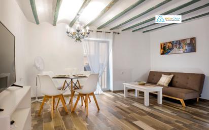 SICU CASA pone a su disposición en ALQUILER TEMPORAL este exclusivo apartamento, único en el entorno urbano de Jijona. VÍDEO DISPONIBLE. Se trata de una construcción clásica de cuatro alturas enclavada en pleno casco histórico de Jijona, a dos calles de la avenida principal del municipio. Ha sido completamente rehabilitada, decorada con elegancia y cuenta con acabados modernos de muy alta calidad. Además está completamente provista de vajilla, menaje y complementos para que su estancia sea lo más cómoda posible. El apartamento dispone de 2 dormitorios dobles con camas de matrimonio, armarios y salida a una balcón. 2 baños, uno con plato de ducha, mampara de cristal y lavadora, y el segundo, en suite con la habitación principal, que incluye una amplia bañera. Cocina americana completamente equipada integrada en un amplio y luminoso salón comedor que incluye un televisor de grandes dimensiones conectado a internet. Los suministros de electricidad, agua e internet, se cobran a parte a un precio cerrado de 90 €/mes para una persona o 150 €/mes para dos. Jijona es un Municipio situado en el interior de la provincia de Alicante, a sólo 25 km y unos 20 minutos en coche del centro de Alicante y las playas de Campello o San Juan. Rodeada de conocidos municipios de la sierra alicantina, como Tibi o Alcoy. Conocida internacionalmente como el pueblo del turrón y el helado. Paraje incomparable donde el tiempo se detiene, con rutas y senderos para los amantes de la naturaleza. Casa Toni se encuentra a pocos metros de la arteria principal del municipio, la Avenida de la Constitución, en la que se ubica el Ayuntamiento y que dispone de cafeterías, restaurantes, farmacia, panadería, estanco, óptica, gestoría, notaría, mercado y todos los servicios que pueda necesitar, además de una gran facilidad para aparcar el coche. El municipio cuenta con todos los servicios propios de una gran ciudad, con la enorme ventaja de que todo está muy próximo y se puede hacer caminando en pocos minutos. Se solicitará solvencia demostrable mediante contrato de trabajo y nóminas. NO SE ADMITEN MASCOTAS Más información y Visitas: SICU CASA Tel. y WhatsApp Seis Cero Cinco Cinco Uno Tres Dos Cuatro Siete.