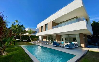 Exclusiva villa de estilo moderno disponible para alquiler a largo plazo en la zona de El Campanario, Estepona. Cuenta con 5 dormitorios y 5 baños, amplias terrazas, jardín y piscina privada. La propiedad está diseñada con calidades de lujo e incorpora mobiliario sofisticado que crea un ambiente elegante y acogedor. Ideal para familias que deseen disfrutar de sus espacios exteriores y comodidades. Ubicación inmejorable, rodeada de campos de golf, servicios e instalaciones. Sin duda, una propiedad insuperable que merece una visita. Se requerirá un depósito adicional y será necesario acreditar solvencia económica.