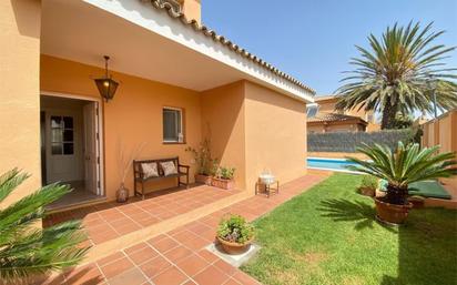 Chalet a 500 m de la playa Valdelagrana con 4 dormitorios y 3 baños, salón comedor con chimenea, cocina equipada, terraza, barbacoa, piscina privada, jardín.