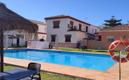 Chalet ubicado en urbanización los álamos , con porche, lavadero, patio con puerta de salida a la piscina comunitaria , 3 habitaciones de las cuales 2 dan a la piscina, 2 baños , salón , comedor y cocina. Alquiler solo los meses de Marzo, abril , mayo y junio. A 5 minutos andando de la playa.