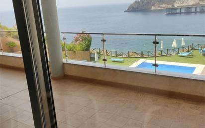 Vivienda en primera linea de playa con excelentes vistas al mar Mediterráneo, cuenta con una amplia terraza de 24 m2 tres habitaciones, dos cuartos de baño y cocina integrada en comedor.
