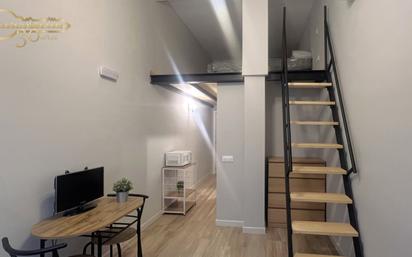 Se alquila estudio, con gastos de consumo y wifi incluidos en el precio, ideal para una persona que busque un espacio cómodo, moderno y bien distribuido. En la planta baja se encuentra la cocina, el salón y el cuarto de baño completo con plato de ducha, creando una zona de día práctica y funcional. La planta superior alberga el dormitorio, un espacio independiente que aporta mayor privacidad y separación entre descanso y zona de estar. El estudio dispone de aire acondicionado frío/calor y agua caliente individual mediante termo eléctrico. El edificio cuenta con zonas comunes, entre las que se incluyen una sala de estar compartida, patio exterior comunitario y zona de lavandería equipada con lavadoras y secadoras. Una vivienda ideal para quien valora la distribución en dos alturas, los servicios incluidos y un entorno cuidado y tranquilo.