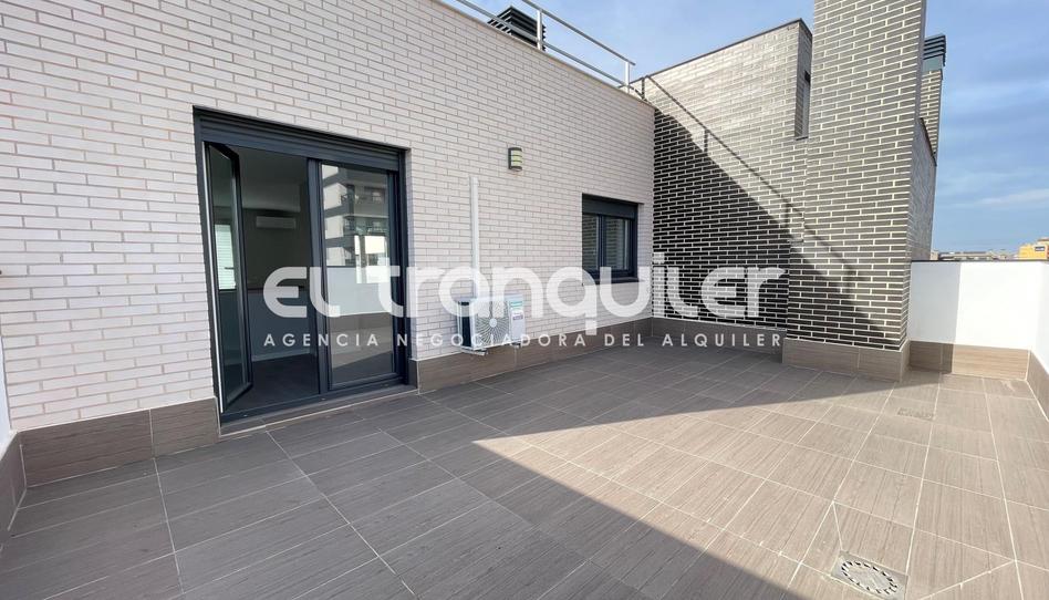 Se alquila estupendo ático dúplex en vivienda de nueva construcción, exterior y muy luminosa de 174 m2 (153 de vivienda) según catastro. Dispone en planta baja, amplio hall recibidor, 2 dormitorios, 2 cuartos de baño, salón comedor con salida a una terraza cerrada y cocina independiente equipada con electrodomésticos. la planta superior es completamente diáfana dividida en varias estancias, con despacho, sala de estar y salida a 2 magnificas terrazas. La planta superior dispone de entrada independiente. Dispone de puerta blindada, suelos de tarima, armarios empotrados, ventanas climalit, aire acondicionado y calefacción individual por gas natural. Incluye plaza de garaje. La vivienda se alquila amueblada con posibilidad de retirar mobiliario. Finca con ascensor, piscina, portero físico y zonas de jardín. No admite animales.