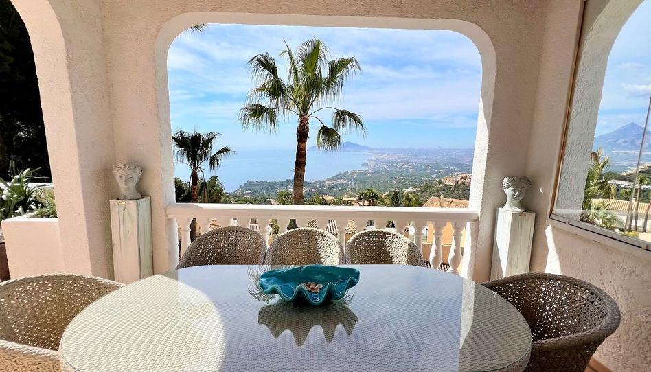 Se encuentra en una urbanización privada con vigilancia 24h. Zona tranquila con agradables vistas. Consta de 4 dormitorios y 3 baños, en planta principal está la entrada y se accede al salón, cocina, terraza y un dormitorio con el baño en suite. todo en el mismo nivel. en la planta de abajo están dos dormitorios con un baño y balcones con vistas al mar, desde ahí se accede a la zona de piscina. Frente a la piscina hay un apartamento con un dormitorio, baño en suite, salón comedor con una pequeña cocina y un Sauna, todo frente a la terraza de la piscina donde está una zona chill out con horno, barbacoa y todo lo necesario para pasar una velada estupenda frente a la piscina.