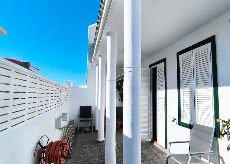 Planta alta con tres dormitorios, baño, balcón y terraza.