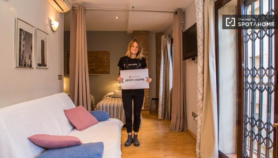 Este estudio está ubicado en la calle del Mar, en la zona de La Barceloneta de Barcelona. Con sus playas de arena, elegantes restaurantes y discotecas, no es de extrañar que la Barceloneta sea uno de los barrios más populares y emocionantes de la ciudad. El apartamento está situado a minutos de la playa y está muy bien equipado: secador, TV e incluso aire acondicionado para un alivio fresco de los calurosos veranos de Barcelona. ¡Ideal para profesionales y estudiantes, a los inquilinos les encantará vivir en este estudio de lujo!