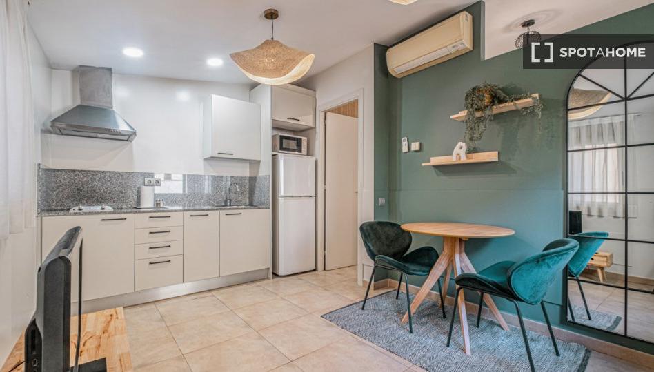 Este acogedor estudio en Sants, Barcelona, está completamente amueblado y cuenta con aire acondicionado individual y cocina equipada. Los gastos de agua, gas y wifi están incluidos. La propiedad está verificada por Spotahome, lo que garantiza una experiencia de alquiler sin complicaciones. No se permite fumar ni se admiten mascotas.