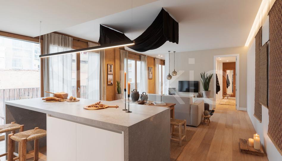 Este apartamento, que ofrece un dormitorio y un cuarto de baño, inspira asombro desde su misma entrada, descubriendo un espacio de concepto abierto compuesto por cocina, salón y comedor. A su izquierda queda emplazada la cocina, presumiendo de modernidad e integralmente amueblada y equipada con electrodomésticos y utensilios de cocina. Adicionalmente, incluye una isla alargada con barra de desayuno para dos personas.