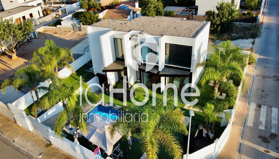 Parcela con un diseño minimalista combina césped artificial con elementos naturales, todo el exterior con puntos de luces para la noche, disfruta de una gran piscina dotada de zona de playa, escaleras romanas y su elemento diferenciador la venta subacuática con vistas a la zona de ocio.