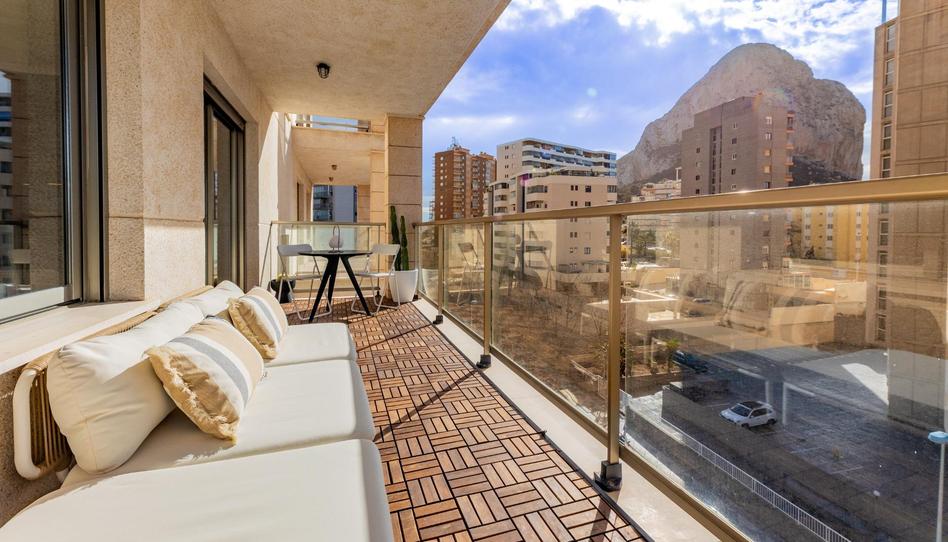 - Amplio balcón de 12 metros, zona de chillo out con sofa, mesa y sillas de exterior con VISTAS AL MAR, AL PEÑON DE IFACH y a las SALINAS.