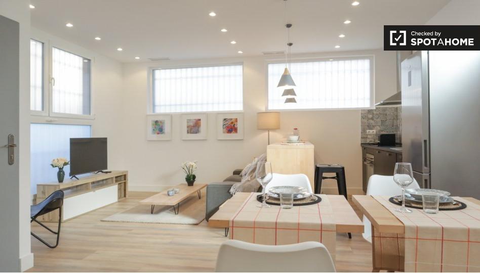 Este apartamento de 2 dormitorios disponible para alquilar es una opción fantástica para trabajadores y estudiantes de posgrado que buscan un espacio cómodo y elegante en Coslada. El apartamento se entrega completamente amueblado e incluye excelentes comodidades, como aire acondicionado frío/calor, cocina equipada con lavavajillas y horno, y lavadora privada para mayor comodidad. Incluye wifi y servicio de limpieza periódico, lo que garantiza un espacio bien cuidado y conectado. Spotahome ha verificado personalmente la propiedad, lo que garantiza su calidad y fiabilidad.