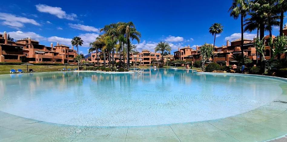 La urbanización es perfecta para familias con niños, ya que ofrece seguridad 24 horas, amplios jardines tropicales con pequeños lagos, y una impresionante piscina estilo resort con una isla central decorada con palmeras y un bar en el centro donde se pueden tomar bebidas o helados. El entorno es seguro, tranquilo y muy bien mantenido durante todo el año.