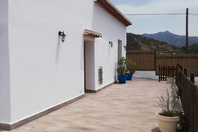 Villa de alquiler en Frigiliana con una parcela de unos 500 m2, vivienda de unos 120 m2, 3 dormitorios, 2 baños completos, amplio salón-comedor, cocina equipada, amueblado, aire acondicionado, chimenea, piscina privada, aparcamiento para 3 coches, vistas al mar y la montaña, jardín privado.