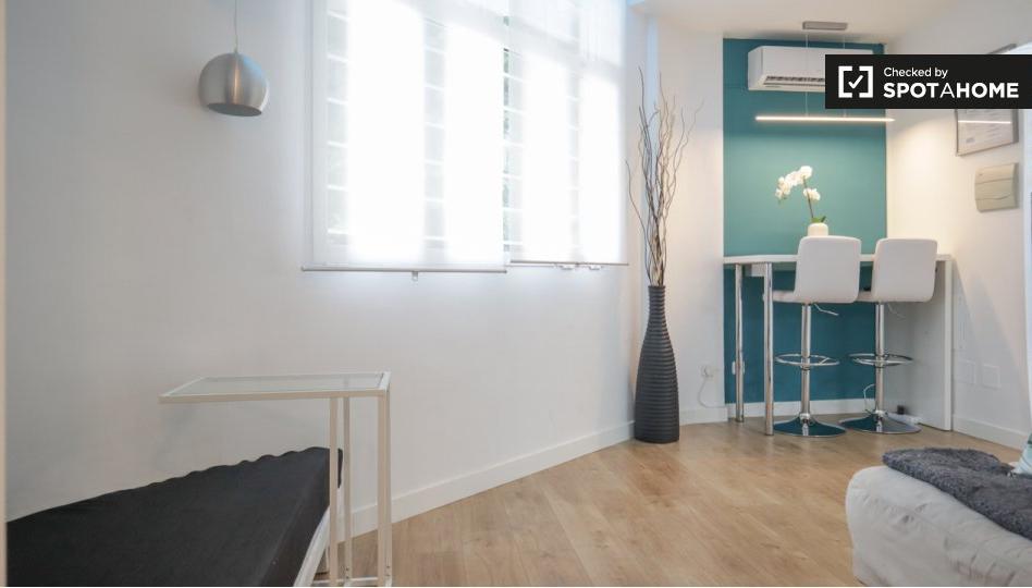 Este estudio, convenientemente ubicado en Puerta del Ángel, está listo para alquilar y se entrega completamente amueblado. Cuenta con aire acondicionado individual, cocina equipada y lavadora privada, además de todos los gastos incluidos (luz, gas, agua y wifi). Este encantador espacio, verificado personalmente por el Homechecker de Spotahome, es ideal para parejas.