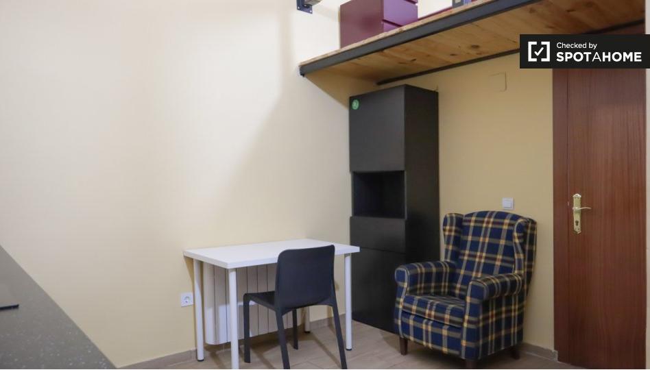Bienvenido a este encantador estudio ubicado en el barrio madrileño de Canillejas. Ideal para estudiantes y profesionales, esta propiedad completamente amueblada está diseñada para la comodidad y la funcionalidad. El estudio está equipado con comodidades como TV y lavadora compartida. Incluye wifi, lo que garantiza un acceso a internet fiable. La propiedad ha sido revisada por Spotahome para garantizar su calidad.