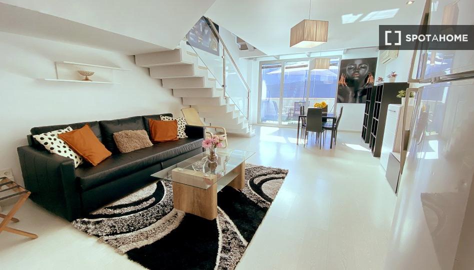 Ven a disfrutar de este precioso apartamento de 4 dormitorios en Valdefuentes, Madrid. Ofrece un cómodo aire acondicionado individual, calefacción con sistema eléctrico individual y un balcón ideal para relajarse. La cocina está equipada para satisfacer tus necesidades culinarias y una lavadora privada garantiza la comodidad de lavar la ropa. Además, el propietario da la bienvenida a inquilinos de todos los géneros sin restricciones.