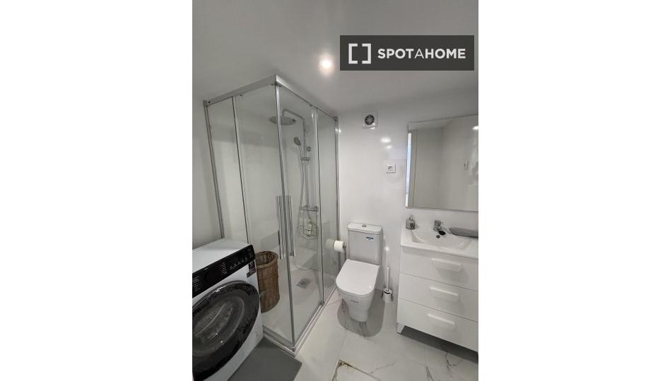 Este estudio en la zona de El Cañaveral, Madrid, es apto solo para mujeres y está amueblado para su comodidad. Lamentablemente, no se admiten parejas y no hay internet disponible, pero el estudio cuenta con lavadora compartida, calefacción eléctrica, cocina equipada con electrodomésticos y aire acondicionado central para mayor comodidad. Elija este estudio para vivir cómodamente cerca de los servicios locales.