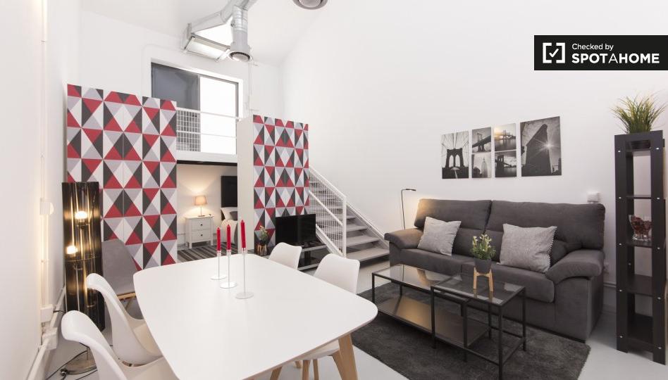 Este encantador estudio, ubicado en Pueblo Nuevo, Madrid, está completamente amueblado y equipado, ofreciendo una experiencia de vida cómoda y práctica. Los profesionales encontrarán esta propiedad perfecta para sus necesidades, ya que admite mascotas con ciertas restricciones y también se permite fumar. La ropa de cama está incluida y hay una lavadora privada disponible para mayor comodidad. Además, el aire acondicionado y la calefacción central garantizan un ambiente agradable durante todo el año. Se proporciona todo el equipamiento de cocina necesario, incluyendo horno y TV para su entretenimiento. Los servicios a distancia, como el servicio de limpieza, tienen un coste adicional. Tenga en cuenta que las facturas se pagan directamente a los proveedores o según lo especificado.
