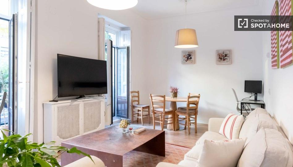 Se alquila piso amueblado de 3 habitaciones en la Calle De Sta Engracia. La propiedad se encuentra en la 1ª planta de un edificio con ascensor. La propiedad incluye balcón, aire acondicionado, lavadora y secadora.