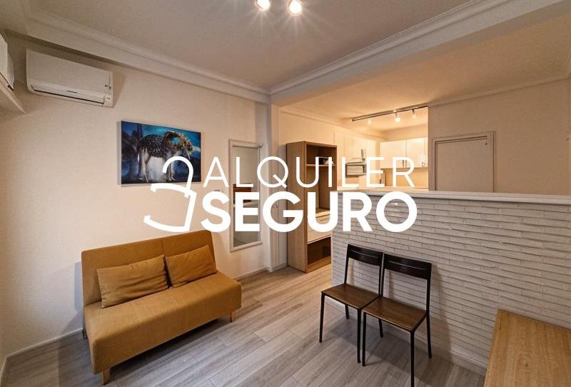 Magnífico estudio REFORMADO de 30m2 que consta de amplio estar con salón-comedor, separador de habitación, cocina americana totalmente amueblada y equipada y 1 cuarto de baño completo con plato de ducha. La vivienda cuenta con aire acondicionado con bomba de frío/calor, es interior y se entrega amueblado. Gastos de comunidad incluidos en el precio de la renta.