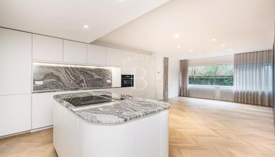 La reforma ha sido realizada por el reconocido estudio de arquitectura NOEMA, utilizando materiales nobles y de máxima calidad. Los suelos son de madera maciza de pino en acabado claro, mientras que la carpintería interior es de madera maciza en roble oscuro. Cocina y baños combinan mármol y piedra caliza. La finca, construida en 1970, ofrece jardín interior con piscina, sala de juegos comunitaria, portero físico de lunes a domingo y opción de plaza de garaje por 150 € adicionales al mes. Ubicación privilegiada en el Paseo de la Habana.