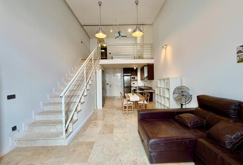 GLOBALPISO alquila estupendo loft de 83m2. construidos, distribuidos en 2 plantas con 1 dormitorio amplio con baño completo en suite con columna de hidromasaje, 1 aseo, amplio salón con cocina americana totalmente equipada y pequeño balcón, aire acondicionado por conducto con bomba de frío y calor, armario empotrado en el dormitorio y otro bajo escaleras. El inmueble se entrega totalmente amueblado y equipado.