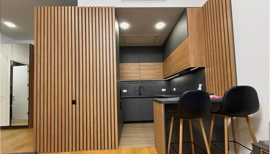 Cuenta con un amplio y luminoso salón-comedor con cocina integrada, totalmente equipada con electrodomésticos, que combina tonos oscuros y madera, creando un ambiente sofisticado y acogedor. El salón dispone de grandes ventanales que aportan abundante luz natural.